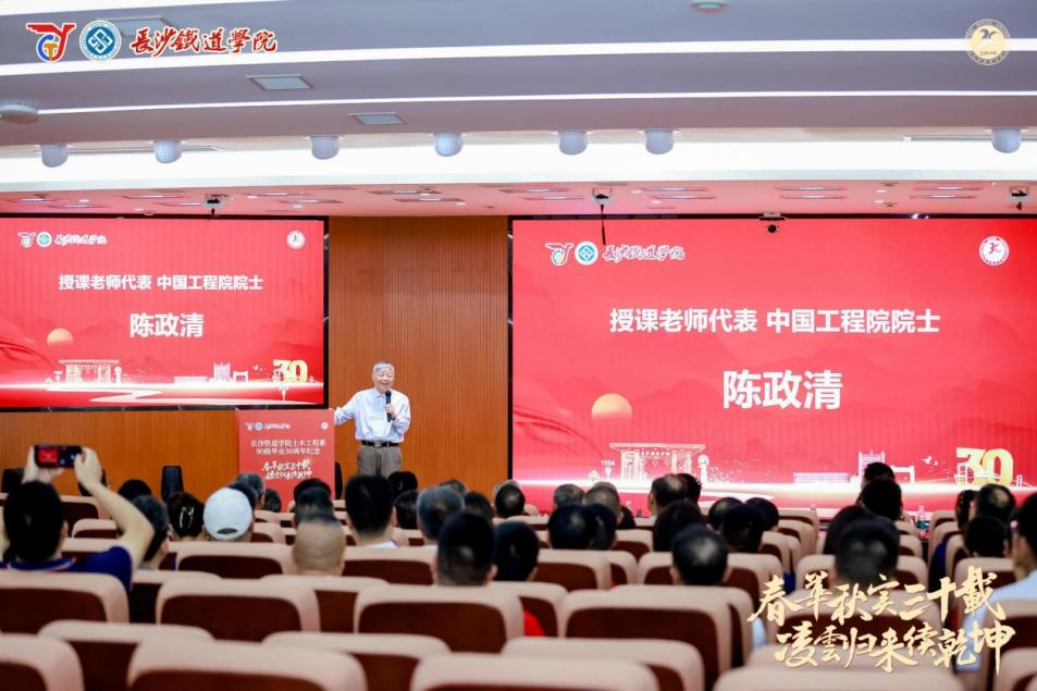 中国工程院院士陈政清作为授课教师代表上台讲话。他动情回忆了与90级校友们的相处时光,表示十分怀念共同奋斗的日子。并向校友们讲述了土木工程在国家民生建设的重要地位,交流了土木工程中长期的发展规划。
