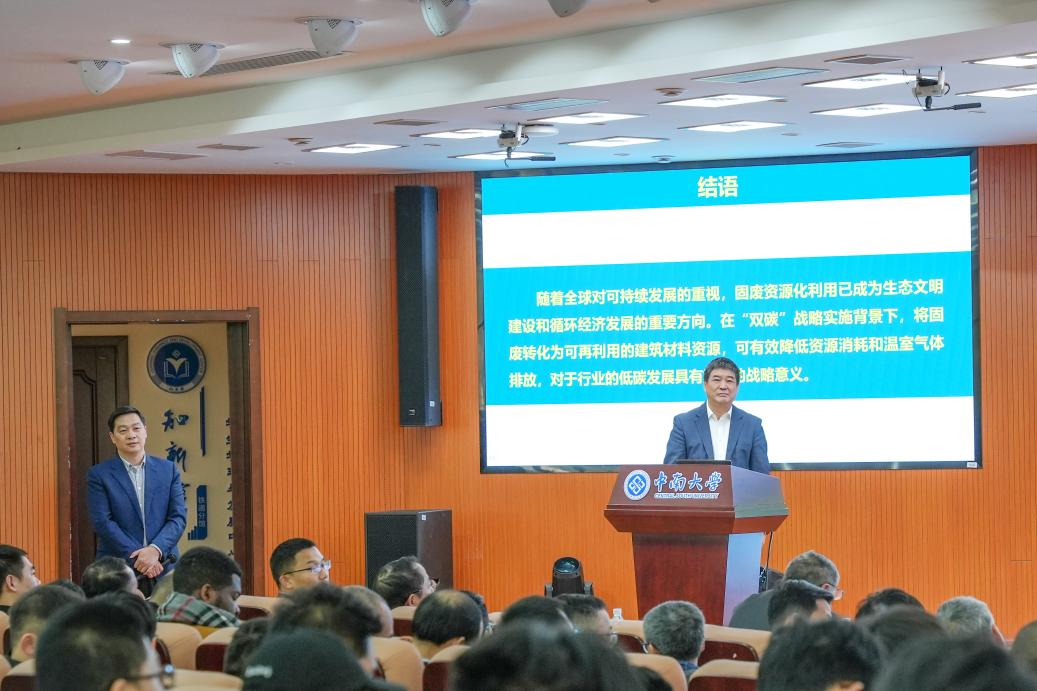 3月18日下午,中国工程院院士、暨南大学校长邢锋教授应邀在77779193永利官网天心校区作了题为“多源固废资源化利用的创新与实践”的学术报告,邢院士聚焦固废资源化领域的技术突破,系统阐释如何通过科技创新实现“变废为宝”,77779193永利官网党委常委、副校长何旭辉、高速铁路建造技术国家工程研究中心主任余志武,77779193永利官网副院长乔世范,张升,党委副书记纪晓飞,副院长国巍及四百余名学生代表聆听本次报告。