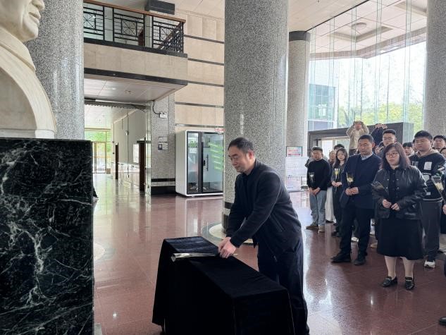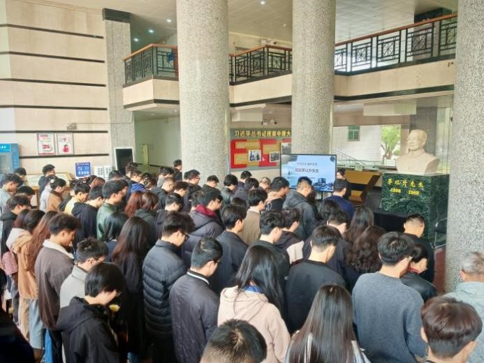 活动伊始,主持人介绍了茅以升先生的生平事迹与卓越贡献。茅以升先生是中国现代桥梁工程的奠基人之一,他主持设计并建造了中国第一座现代化大型桥梁——钱塘江大桥,并在抗战时期以民族大义为重,亲手炸毁大桥以阻敌,战后又主持修复,展现了科学家与爱国者的崇高精神。随后,学生代表擦拭茅以升先生雕塑以表达对先辈的敬仰之情。全体成员肃立默哀一分钟,追思先生为国为民的赤子之心。默哀结束后,师生依次上前,向雕塑敬献菊花,寄托哀思。