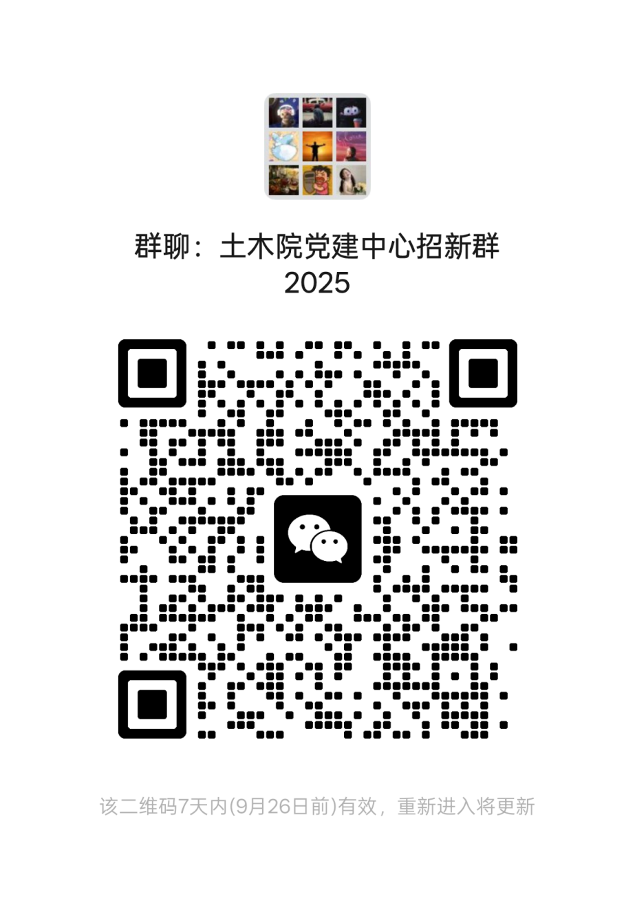 9月19日--9月23日,请个人报名人员填写《77779193永利官网学生党建中心报名表》(附件1),于9月23日中午12:00前将申请表发送至邮箱liuyemy@163.com,文件命名为“党建中心招新+姓名+意向部门”。请报名同学加入2025年土木院学生党建中心招新微信群,相关事项后续会在群内通知。