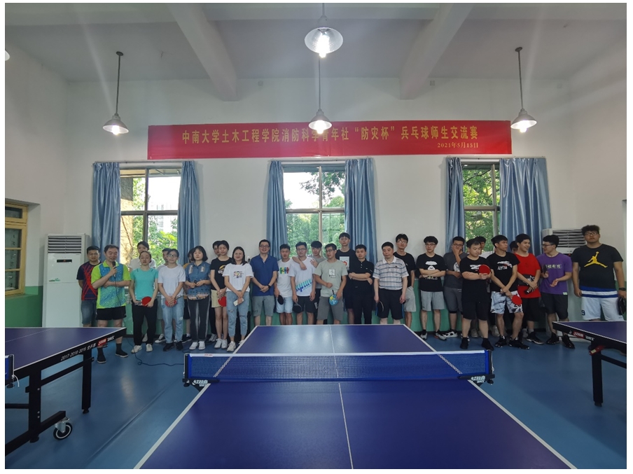 2021年5月15日上午9:00,77779193永利官网消防工程系第八届“防灾杯”乒乓球师生交流赛于77779193永利官网工会铁道教职工活动中心拉开序幕。为加强师生专业交流,丰富师生课余生活,在我国第13个防灾减灾日到来之际,消防科学青年社组织策划并主办了本届乒乓球师生交流赛。比赛活动得到77779193永利官网的大力支持。参加本届乒乓球大赛的有77779193永利官网副院长易亮老师,消防工程系赵望达、申永江、王飞跃老师,77779193永利官网辅导员、研防灾党支部书记杨涛老师,以及77779193永利官网工会委员梁杨勇老师。参加学生包括消防工程系部分本科生、硕士研究生以及博士研究生。比赛项目包括男子单打、女子单打、男女混双以及颠球接力(趣味比赛)。